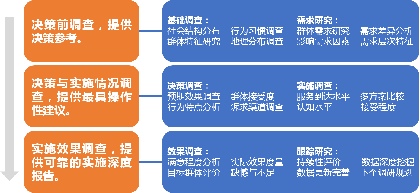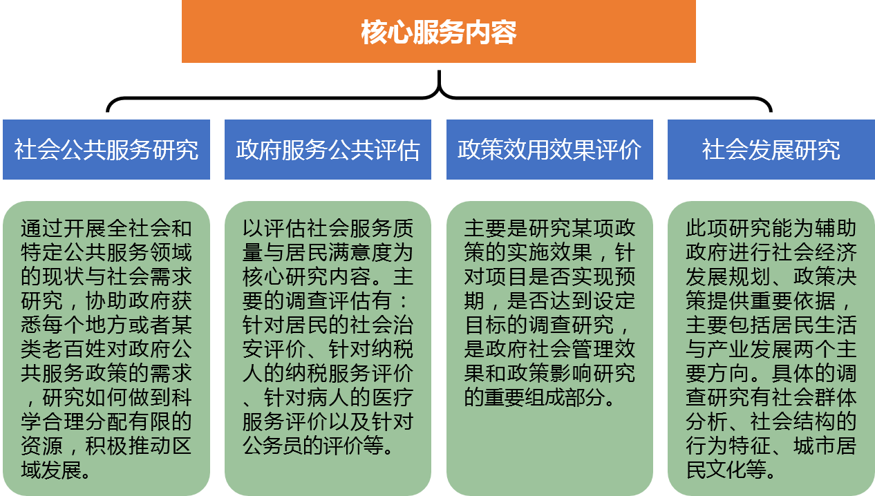 目前我國(guó)各級(jí)政府在追求發(fā)展效率的同時(shí),也在積極推動(dòng)和創(chuàng)建和諧社會(huì),如何掌握社會(huì)需求,提供合理服務(wù),降低社會(huì)公共事務(wù)成本,取得工作好評(píng)對(duì)于決策和執(zhí)行層都非常重要。另外如何科學(xué)、合理、客觀地由社會(huì)對(duì)工作做出真實(shí)評(píng)估,對(duì)于總結(jié)特點(diǎn)、發(fā)揚(yáng)優(yōu)勢(shì)、彌補(bǔ)不足更為重要。華夏經(jīng)緯在政府/協(xié)會(huì)等領(lǐng)域擁有豐富的資料、最新的政府統(tǒng)計(jì)信息及相關(guān)研究經(jīng)驗(yàn),并受到了各級(jí)政府和職能部門的充分肯定。