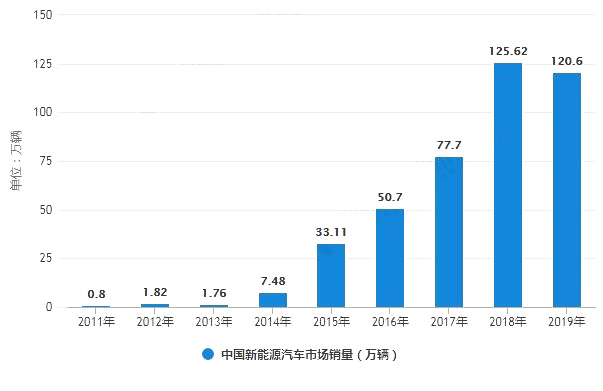 根據(jù)工信部在論壇上公開的數(shù)據(jù),2019年我國新能源汽車銷量120.6萬輛,2018年這一數(shù)據(jù)為125.6萬輛,下降約3.98%。這是我國自2009年大力推廣新能源汽車市場發(fā)展以來,首次出現(xiàn)新能源汽車年度銷量下滑。